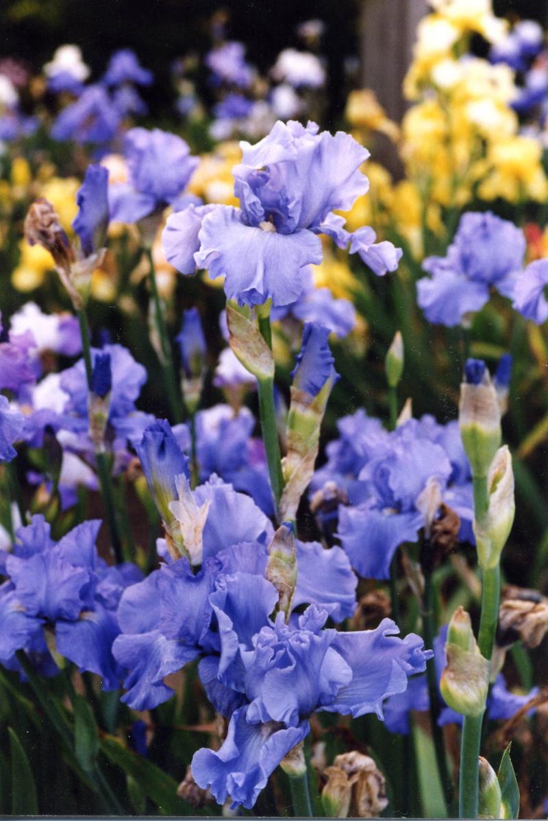 Welcome to Winterberry Gardens, the home of Don and Ginny Spoon, thousands of different iris cultivars, and even more numerous seedlings of bearded irises. Both Don and Ginny, and our son Bryan, hybridize irises, and have received top awards with our hybrids from the American Iris Society and the International Competition in Florence, Italy. Please explore our web page and enjoy our photos and articles about our bearded irises grown and developed in northern Virginia. Pictured above is a clump of one of our 2010 introductions, named 'Bluebirds Fly'.